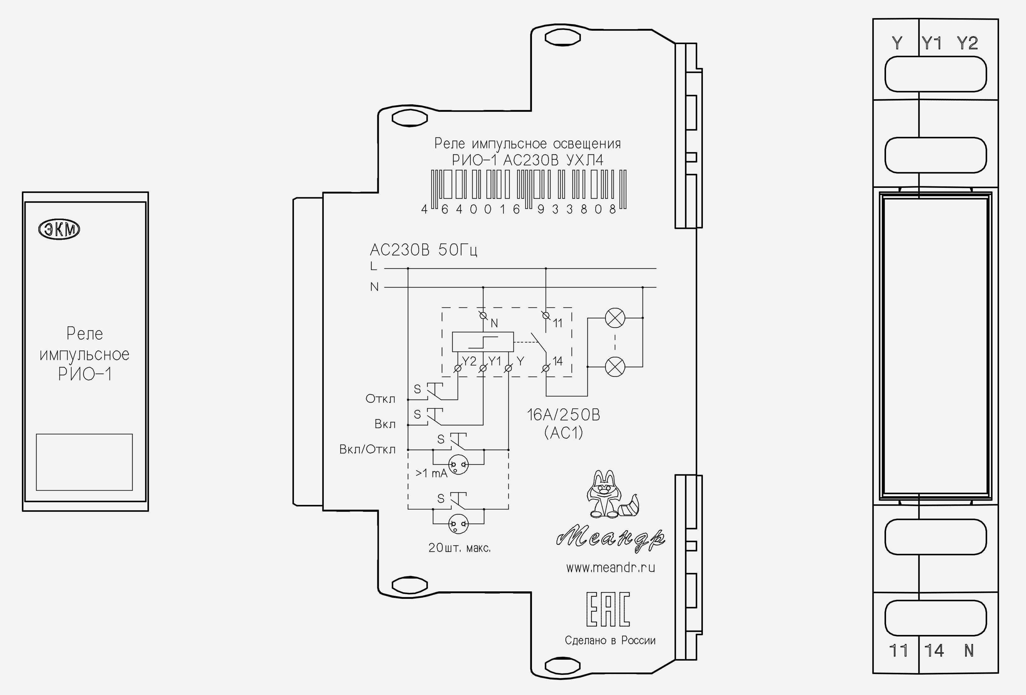 Импульсное реле управления освещением РИО-1 (реле памяти)