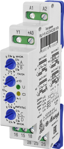 Реле имеет 5 поддиапазонов выдержки времени паузы и 5 поддиапазонов выдержки времени импульса. Требуемая выдержка паузы (tп) определяется путём умножения числового значения, установленного на шкале потенциометра «ПАУЗА», на множитель выбранного диапазона на переключателе «МНОЖ.» паузы. Требуемая выдержка импульса (tи) определяется путём умножения числового значения, установленного на шкале потенциометра «ИМПУЛЬС», на множитель выбранного диапазона на переключателе «множитель» импульса.